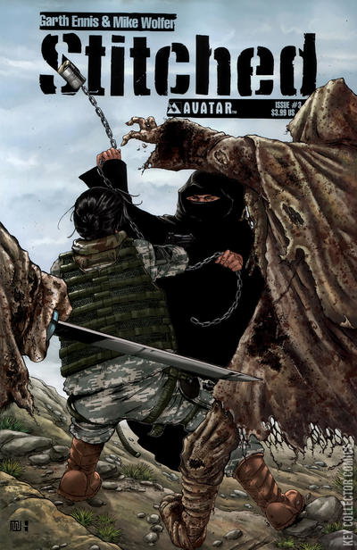 Garth Ennis continues the epic modern horror story that unleashes a new kind of monster! The crew of a downed American Blackhawk and the SAS team who they were charged with extracting begin their long walk through enemy territory. But no soldiers have ever faced adversaries quite like the ones who wait in the Afghanistan desert, twisted remnants of tortured human corpses reanimated by black magic and intent of murdering every living thing within their grasp. As the mystery of the Stitched deepens and their attacks come more unexpectedly, a few tantalizing clues to their creation begin to unfold, but it's a truth that's almost too unbearable to believe. This new on-going series is certain to appeal to Ennis' legions of fans as it pushes the envelope of horror beyond the boundaries of sanity and into fresh nightmares. Stitched #3 is available with a Regular cover, Wraparound cover, and Gore cover by series artist Mike Wolfer, and a special Stitched Movie Photo cover retailer incentive cover.