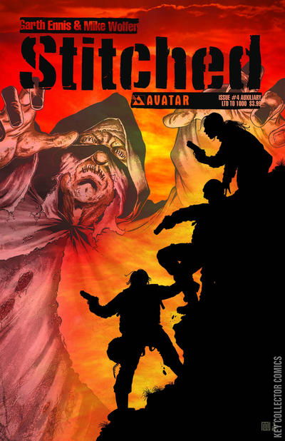 Garth Ennis' shocking tale of the supernatural behind enemy lines continues! Struggling to survive and stay one step ahead of Taliban forces and the horrific creatures they've dubbed 'The Stitched,' six American and British soldiers face certain death in the Afghanistan desert. Through information revealed by a captured combatant, the team begins to learn the mechanics of the shambling, corpse-like terrors which pursue them, but should they save their own skins or fight against the Stitched, who are tearing apart not only soldiers, but innocent civilians? Stitched #4 is available with a Regular cover, Wraparound cover, and Gore cover by series artist Mike Wolfer, and a special Stitched Movie Photo cover retailer incentive cover.