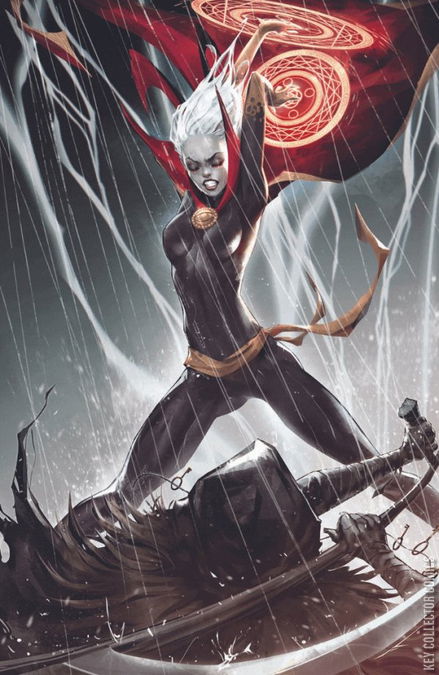 Clea comes face-to-face with the mysterious Harvestman, as they both face off against an undead foe! Though just as Clea begins to uncover ways to bring Stephen Strange back, another attack upon the magical realm is at hand! But Clea is not just any Sorcerer Supreme, she is a Warlord…and this second attack will not stand under her rule! LEGACY #418