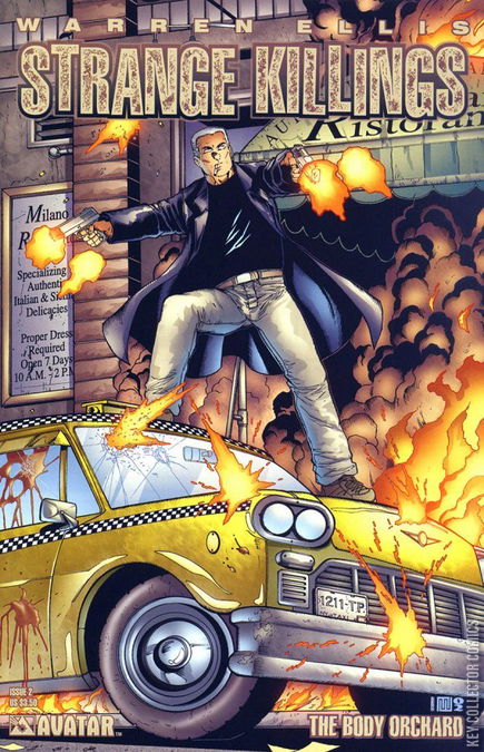 Warren Ellis continues to shock with Strange Killings! William Gravel is supposed to be in Britain, resuming his duties... but he's still in NYC, trying to work out why his old S.A.S. team seems to be committing atrocities on American soil - and running the risk of being suspected of them himself! Being the only S.A.S. man in a city reeling from killings with an S.A.S. signature, and with his team apparently out of control and contact, Gravel finds himself on the wrong end of everything and every turn simply offers more questions. Do the members of Alpha-One-Four know the answer to the greatest combat magician secret, what is the Body Orchard?