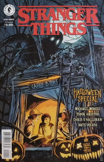 In the days before season one of the hit Netflix original series Stranger Things, less than a week before Will disappears, it's Halloween in Hawkins. Comics all-star Michael Moreci (Wasted Space, Star Wars), Todor Hristov (The Forever Maps, Soul Trader), Chris O'Halloran (Ice Cream Man, Immortal Hulk) and Nate Piekos bring you the Stranger Things Halloween Special One-Shot. It's Halloween night in Hawkins, Indiana and Will, Mike, Lucas and Dustin gather in Castle Byers to eat candy and scare each other with spooky stories. Little do they know, they'll reveal the quaint town's deepest kept secret—the Child-Eater of Hawkins.