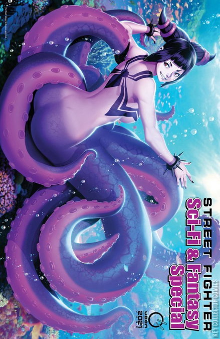 The World Warriors explore fantastic and cosmic new settings in the Street Fighter 2021 Sci-Fi & Fantasy Special! See Chun-li, Cammy, Juri, Guile, Ken and friends cross into the worlds of cyberpunk, swords & sorcery, horror, mecha, outer space, and more in this pin-up collection by the artists of UDON.