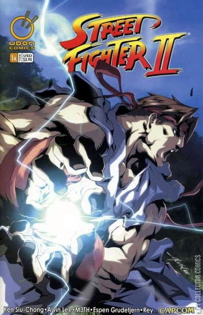 The Stage is Set! Street Fighter II begins the journey to the epic World Warrior Tournament, catching up with all of your favourite fighters and delving into the backstory of the greatest threat the world has ever known -- M. Bison! Plus! In this issue, an artistic tour-de-force by Arnold Tsang depicts the final, fatal confrontation between Gokken and Akuma!The historic battle between Akuma and Gouken, the origin of M.Bison & Ryu meets Dhalsim.