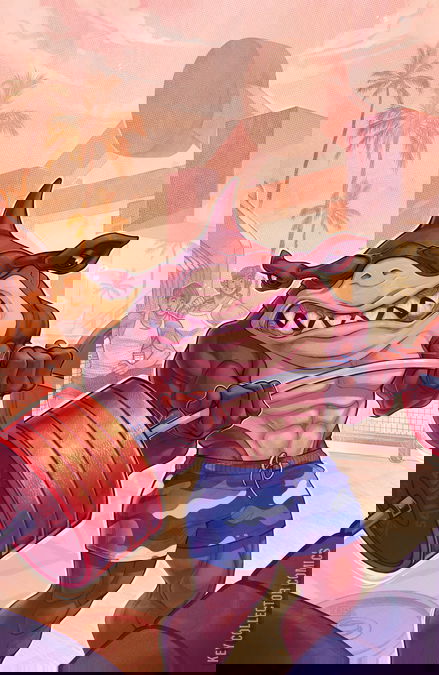 It’s Spirit Week at Fission University! Get ready for a week of pep rallies, alumni meetups, carnival rides, and…another villainous scheme!The Street Sharks discover a plot by Dr. Paradigm to gene-slam the football players and cheerleaders, making them into an army of athletic, subservient monsters! In order to stop Dr. Paradigm, the Sharks will need to go undercover during Spirit Week and save Fission City’s student population! But how do four giant talking sharks go undercover among crowds of human students? Well…you’re never going to believe what the school’s mascot is.