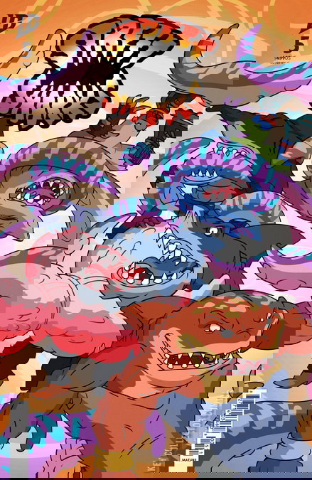 It’s all built up to this…the series finale!In each of the previous issues, Dr. Paradigm, A.K.A. Dr. Piranoid, A.K.A. the fishiest mad scientist in Fission City, has subjected the Street Sharks and the city to an array of schemes. All the while, he’s been building…plotting…and now, the doctor’s most devastating creation will be unleashed upon the world! It’s the Street Sharks versus Dr. Paradigm’s “Perfect Predator”! Standing eight feet tall and made from the combined DNA of an octopus, a crab, and a great white shark, this is the scariest foe the Sharks have ever fought! If they lose, we may have to retitle this series…