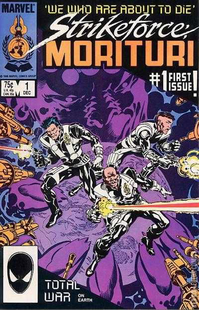 Total War on Earth. The challenge and responsibility of super heroism is explored like never before in this incredible series about normal men and women willing to make the ultimate self-sacrifice to save their world! The Earth of the near future has been invaded by aliens. Only one force is strong enough to confront them - Strikeforce Morituri! They are normal people who volunteer t become super heroes to save Earth - knowing that the transformation will ultimately kill them!