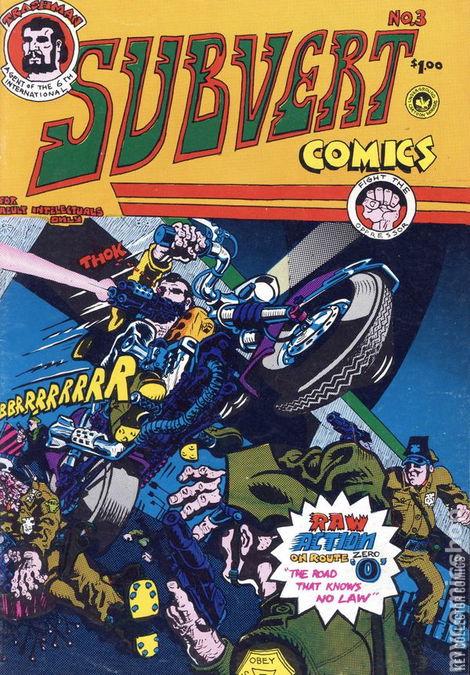 Written and drawn by Spain Rodriguez. Spain Rodriguez's Super-Spy The Trashman rides "The Road That Knows No Law!" 7-in, x 10-in., 32 pages, B&W. MATURE READERS.