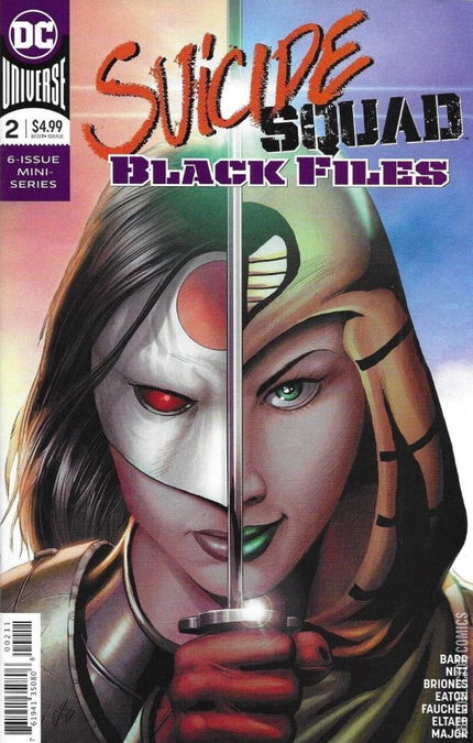 Trapped inside her Soultaker sword, the soul of Katana is torn between staying with her murdered husband or rejoining the world of the living. Meanwhile, Kobra's Queen, Eve, makes nefarious use of Katana's body as she infiltrates the Suicide Squad. Also in this issue, Suicide Squad Black tries to leave its deadly first mission in the past and get one step ahead of the apocalypse warlock, Sebastian Faust. To beat the sorcerer, this magically fueled task force needs something he covets. But like all things Suicide Squad, their next mission is no ordinary smash-and-grab, but rather a jewel heist on Gemworld!