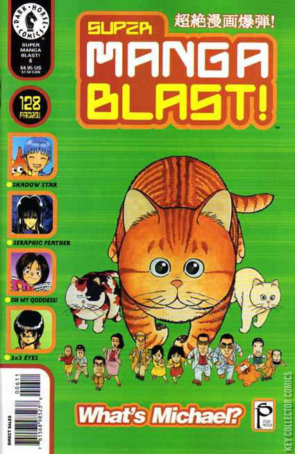 What's Michael? is cover-featured this month, with not one, but three short stories! Watch as Michael helps a thief, frightens a Mafia criminal, and annoys the heck out of some television viewers! And in 3x3 Eyes, Pai and Yakumo battle a mammoth demon and try to recover the legendary "Figure of Man" statue. In Shadow Star, secrets are uncovered and mysteries unfold as Shiina and a friend learn about each other's alien starfish! Plus, evil is revealed on the moon in Seraphic Feather, and Megumi encounters the Earth Spirit (Third Class) in another "lost" episode of Oh My Goddess! It's five full-length features for one low price, only from Dark Horse!