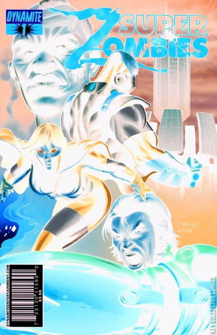 1. Super-Zombie [soo-per zom-bee] -noun a. flesh eaters with super powers. 2. Super-Zombies [soo-per zom-bees] -noun, plural a. The next BIG hit from Dynamite Entertainment! In a world filled with super-heroes, one man stands apart, Neuron, once known as Bernard Jaeger, the man responsible for saving the world, most particularly from the KHR SYNDROME. But it was this very plague which began to change the world forever, filling its population of super heroes with a deadly new hunger - a hunger for human flesh! From Dynamite Entertainment, writers Marc (Spider-Man) Guggenheim and Vince Gonzales, and artist Mel (RED SONJA) Rubi comes SUPER-ZOMBIES #1 - THE Comic Book Entertainment event of 2009! Featuring covers by Rubi, Dynamite exclusive artist Fabiano Neves and new sensation Chasen, SUPER-ZOMBIES #1 is poised to be the biggest book of 2009... any beyond!
