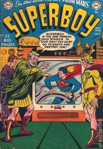THE BOY FROM MARS! Marsboy, the super-hero of Mars, must go to Earth and bring back the one thing to save his race by defeating Superboy. SUPERBOY GOES TO SCHOOL! In order to convince potential dropouts to stay in school, Superboy agrees to attend Smallville High in costume...but one teacher insists that he go to school four years to get his diploma. PA KENT'S DANGEROUS ASSISTANT! Pa Kent takes on a new helper in his store, whom Superboy learns is deliberately sabotaging the place as part of a hijacking gang's scheme.