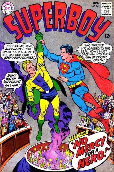 No Mercy for a Hero! (Superboy, Lana Lang, Ma and Pa Kent (both cameos) / written by Leo Dorfman) An alien from Belgor named Ron-Avon gives Superboy an ultimatum: Challenge him in a best 2 of 3 contest or he turns the residents of Smallville into metal! Will Superboy win these contests? If he loses the Smallvillians will be turned to metal too! And will Superboy kill Ron if he does win? If Superboy doesn't kill him, then Ron's parents will get killed. What can Superboy do? Cap's Hobby Hints (by Henry Boltinoff)