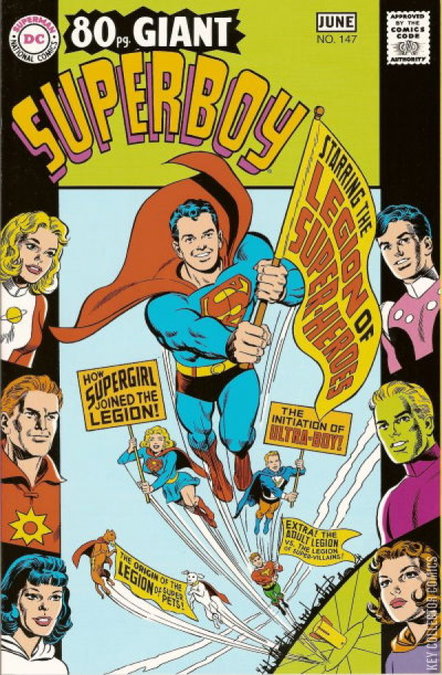 This "80 pg. Giant G 47" gives the origins of various super-teams and how various characters joined them. The Origin of the Legion! (Legion of Super-Heroes / written by E. Nelson Bridwell : reprinted in: Secret Origins #6, The Legion of Super-Heroes Archives #8) The origin of the Legion of Super-Heroes is finally revealed. A young Garth Ranzz boards a ship to Earth to find his brother, Mekt Ranzz. On the same ship is already seated Rokk Krinn, also going to Earth, a native of Braal. Rokk and Garth make each other's acquaintaince and come across Imra Ardeen. While leaving the ship, Imra receives a telepathic message that someone is trying to kill the rich R.J. Brande, who was also on the ship. When she shouts this information out, both Garth and Rokk stop the perpetrators and bring them to justice. R.J. Brande is so grateful that he tells them to come to his office the next day. The three teenagers are then asked by R.J. Brande to join up as superheroes, inspired by the heroes of the past like Superman and Supergirl. The Legion of Super-Heroes is formed and news of their making reaches many planets. Their first new member is Triplicate Girl, who cam to Earth to join them after hearing about their exploits. The next member was Phantom Girl and their roster continued to expand, even admitting their inspirations: Superman and Supergirl. The Boy with Ultra-Powers! (Ultra-Boy, Superboy, Legion of Super-Heroes / written by Jerry Siegel : reprinted from: Superboy #98) Will Ultra-Boy reveal Superboy's identity to join the Legion? The Legion of Super-Traitors! (Superboy, Legion of Super-Heroes, Legion of Super Pets, Supergirl, Mon-El, Jax-Ur, General Zod / written by Jerry Siegel : reprinted from Adventure Comics #293) The Brain Globes of Rambat want to move Earth to their solar system, and hypniotize the Legion of Super Heroes to defeat Superboy, their only obstacle! How do the Legion of Super Pets factor in all this? Supergirl's Three Super-Girl Friends! (Supergirl, Brainiac,...