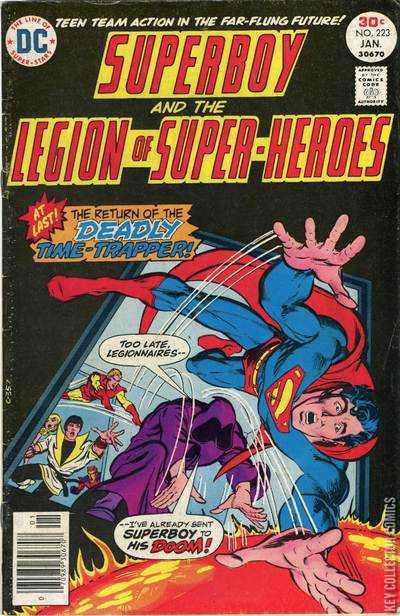 The Legion of Super-Heroes battles the Time Trapper. Unbeknown to either factions, they are observed by Pulsar Stargrave and his two lackeys.
