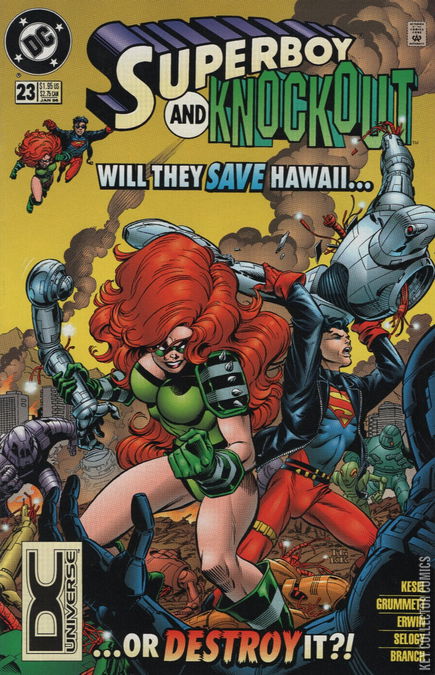 THE LIMITS OF POWER Superboy and the red-headed amazon, Knockout, test the limits of their strength. But things take a turn for the worst when a cadre of killer robots attack the island.