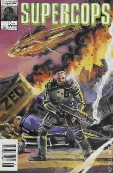 Story by Chuck Dixon. Art by Peter Grau. Cover by Charles Bernard. An early miniseries by future superstar writer Chuck Dixon. Two genetically engineered, heavily armed super police are dispatched to the streets with one objective: to take down criminals. In the aftermath of the Zed battle, the Supercops discover their real enemy. 32 pages, Full Color. Cover price $1.75.