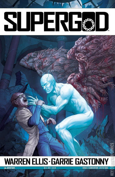 SUPERGOD: Here comes the flying man to save you. I suggest you start screaming now. From the creator of THE AUTHORITY and PLANETARY comes the craziest, nastiest, most soulless and criminal superhero comic of the year! SUPERGOD issue 2: south-east Asia is on fire, an artificial angel whose brain is a faulty radio to God has been loosed on the world, something unimaginable is rising in China, attempts to reactivate America's superhuman in his underground fake childhood town are not going well, nuclear winter blankets the world -- and things haven't even gotten BAD yet. This is what a superhuman arms race would look like. This is what asking to be saved by men who can fly would look like. Take every superhero comic ever published, shove them into a nuclear-powered blender, soak it in bad vodka and set the whole thing alight -- and SUPERGOD will crawl out and eat your brain! This five issue color series is drawn by Garrie Gastonny with colors by Digikore.