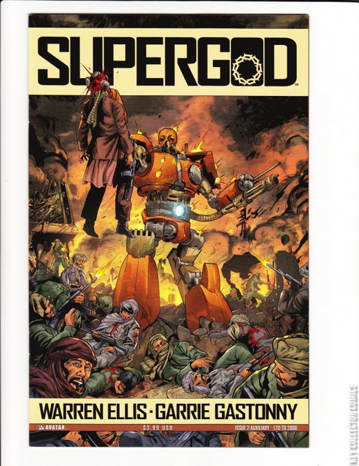 SUPERGOD: Here comes the flying man to save you. I suggest you start screaming now. From the creator of THE AUTHORITY and PLANETARY comes the craziest, nastiest, most soulless and criminal superhero comic of the year! SUPERGOD issue 2: south-east Asia is on fire, an artificial angel whose brain is a faulty radio to God has been loosed on the world, something unimaginable is rising in China, attempts to reactivate America's superhuman in his underground fake childhood town are not going well, nuclear winter blankets the world -- and things haven't even gotten BAD yet. This is what a superhuman arms race would look like. This is what asking to be saved by men who can fly would look like. Take every superhero comic ever published, shove them into a nuclear-powered blender, soak it in bad vodka and set the whole thing alight -- and SUPERGOD will crawl out and eat your brain! This five issue color series is drawn by Garrie Gastonny with colors by Digikore.