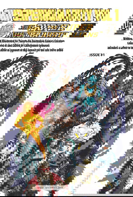 26 top Aussie writers and artists tell a jam tale over four issues of 12 super-heroes surging into meta-charged action that criss-crosses the Australian continent! Includes copy of a letter from the late STEVE DITKO, co-creator of SPIDER-MAN written before he died, encouraging the creator of this project to go ahead with it! Conceived and edited by Christopher Sequeira (STAR TREK: HOLO-WEEN). WRITERS THIS ISSUE: Christopher Sequeira, Dr. Paul Mason, Amanda Bacchi, Julie Ditrich, and Komala Singh. ARTISTS THIS ISSUE: Jan Scherpenhuizen, Adam Yusoff, Dr. Paul Mason, Marcelo Baez, Michel Gerencir, and W. Chew Chan.