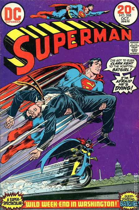Wild Week-End in Washington! Barbara "Batgirl" Gordon tracks Superman to Mr. J's hideout; Batman guest-stars. A Tale of Time and Tide!--The Fabulous World of Krypton starring Jor-El, Zim-El, Kil-Gor, and Har-No