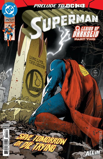 R.I.P. LEGION OF SUPER-HEROES?! Superman and an impossible ally search the future for the lost Legion of Super-Heroes! What happened to it, and can it help in the battle against Darkseid's Absolute Legion?