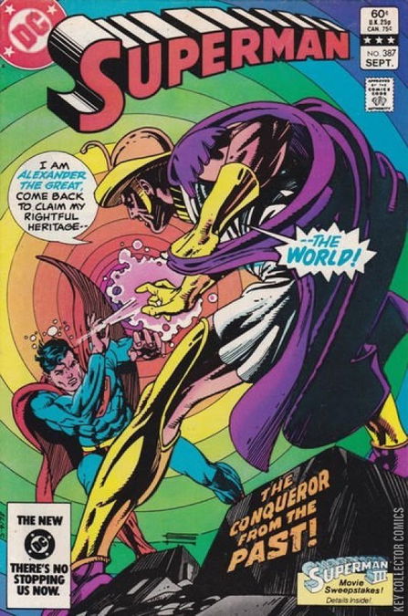 The Conqueror from the Past! The Planeteer captures six world leaders on the eve of a peace conference; Story continues in Action Comics #547. The last two tiers of page 23 are newly added in order to split the story into two parts.