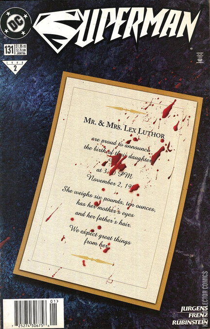 CHECKMATE Luthor and the Contessa have become proud parents! And when Lex promises his bouncing baby that "someday, all this will be yours," he's referring to Metropolis! What sinister plan does Lex have in mind to guarantee that the newest Luthor will be his successor?