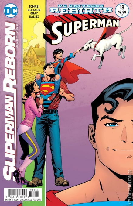 SUPERMAN: REBORN, PART 1 In DC UNIVERSE: REBIRTH #1 , the enigmatic Mr. Oz told this Superman, “You and your family are not what you believe you are. And neither was the fallen Superman.” Now, in the first Rebirth crossover between SUPERMAN and ACTION COMICS, the shocking truth behind Oz’s words is revealed. It begins with one of Oz’s prisoners escaping, and ends in a tragic moment for Lois and Superman. —The covers by Patrick Gleason and Mick Gray and the variant covers by Gary Frank for SUPERMAN #18-19 and ACTION COMICS #975-976 will connect to form a single vertical image. CONTINUED IN ACTION COMICS #975