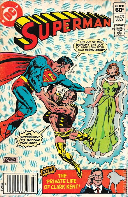 Cover pencils by Rich Buckler, inks by Dick Giordano. Lana Lang's Farewell To Earth!, script by Cary Bates, pencils by Curt Swan, inks by Dave Hunt; Vartox stops by Earth to see Lana, and a mysterious person has granted Lana the ability to return to Vartox's planet with him. An Eye (and Ear) On the World!--Private Life of Clark Kent, script by Bob Rozakis, art by John Calnan; Clark Kent helps Supergirl at her day job on a soap opera.