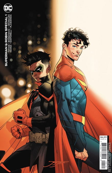 SUPERMAN & ROBIN IN "THE MAGICAL MYSTERY CUBE" As the Super Sons, Jon Kent and Damian Wayne put evil to bed…past its bedtime. But a new day has dawned, and Jon Kent is now the Superman of Metropolis—all grown up and fighting for truth, justice, and the kinds of grown-up things that Superboy was only beginning to understand as a child. Now a ghost from Jon's past has reared its head, and to battle this evil, he'll need to reunite with Robin for one last mission into the heart of darkness. This time they'll be battling not as Super Sons, but as Superman and Robin! This thrilling adventure is written by acclaimed Super Sons scribe Peter J. Tomasi ! Story includes a flashback to when Jon and his father were transported by the Temporal Cube to Dinosaur Island where they met and later rescued Captain Storm of The Losers, as seen in Superman (DC, 2016 series) #8-9 and Superman Special (DC, 2018 series) #1.