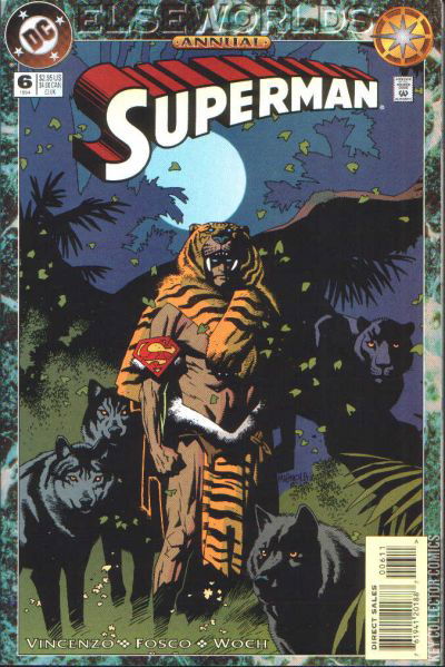 The Elseworlds Annuals, the DC Universe's journey into remote realms of possibility, continue. In the jungles of 19th century India, a "man-cub" from the sky is raised by wolves to become the most ferocious and powerful predator the world has ever seen. It's K'l'l of the Jungle, and it's Captain Sir Richard Francis Burton's task to tame the super-powered, feral wild man...if he can! Written by Darren Vincenzo, with art by Frank Fosco and Stan Woch. Cover by Mike Mignola. This is part of the "Elseworlds" event that spanned all of the annuals published by DC Comics in 1994.