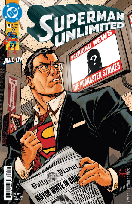 MURDER IN THE MAYOR'S MANSION! Mayor Perry White has seen some major threats impact Metropolis over the years--but even the bulldog of city hall is unprepared for a murderous rampage by...the all-new Prankster?! Superman's now in a race against time to save his friend from a truly sick and twisted death! Do not miss this one. This is the story that will redefine the Prankster as one of Superman's top-tier rogues. Don't say we didn't warn you. Plus: Daily Planet reporter Jon Kent learns a life-changing secret, the Kryptonite Kingdom receives a strange visitor, and Steelworks sees some crazy $%^^%& on the horizon in Die Laughing: Part 1.
