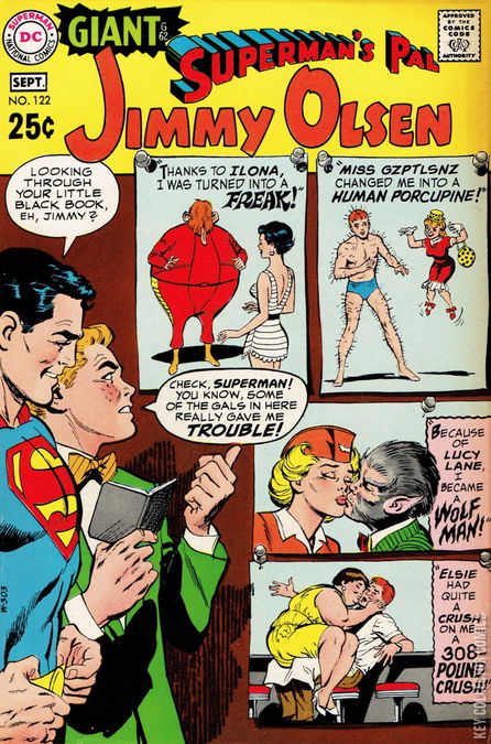A 64 page Giant G-62 an all reprint issue.Cover by Curt Swan and Neal Adams."A Date with Miss Metropolis" Reprinted from Superman's Pal Jimmy Olsen #27."Jimmy Olsen, Freak!" Reprinted from Superman's Pal Jimmy Olsen #59."The Girl Who was Lucy Lane's Double!" Reprinted from Superman's Pal Jimmy Olsen #60."Jimmy Olsen, Wolf-Man!" Reprinted from Superman's Pal Jimmy Olsen #52."Jimmy the Soda Jerk!" Reprinted from Superman's Pal Jimmy Olsen #58."The Human Porcupine" Reprinted from Superman's Pal Jimmy Olsen #65."Jimmy Olsen's Viking Sweetheart!" Reprinted from Superman's Pal Jimmy Olsen #69.