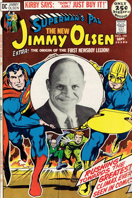 Cover by Jack Kirby, Murphy Anderson, Neal Adams and photographic background."Will the Real Don Rickles Panic?!?" written and penciled by Jack Kirby, heads of Superman and Jimmy Olsen by Murphy Anderson and inked by Vince Colletta. Reprinted in Jimmy Olsen: Adventures by Jack Kirby and Jack Kirby's Fourth World Omnibus #2."The Newsboy Legion Returns" 1 page text piece by Mark Evanier and Steve Sherman."Kirby's the Name! and Comics is my Game!!" 1 page self portrait of Jack Kirby."Newsboy Legion starring the Guardian" "A Kirby Classic" Reprinted from Star Spangled Comics #7 to include the cover."Will the Real Don Rickles Panic?!?"Clark Kent is in space, and is floating to his doom! Towards a malicious looking planet... Okay, he could`ve made it, probably. Anyway, he`s saved by a peculiar figure going trough space (Lightray), who has Clark enter a strange tube...Meanwhile, in Metropolis, Golden Guardian, Jimmy Olsen and Goody Rickles are in danger of dying due to self combustion! They try to find a way to prevent it.Olsen decides to go ask Morgan Edge (who is responsible for their peril, without Jimmy knowing it) if he can help them. He takes Goody with him.On another part of town, Guardian tries to make the one who poisoned them, Ugly Mannheim, undo the damage.In the Daily Bugle, Don Rickles is meant to talk about things, with Morgan Edge. Suddenly, they`re interrupted by our endangered adventurers.The two Rickles meet face to face, and weirdness ensues, as Don Rickles starts to lose his mind. After all, he`s seeing his own doppelganger face to face! It is...logical...right...?Then Rickles and Olsen start to burn!Suddenly, Guardian rams in to the room! He has gotten the antidote to Pyro Granulates effects, and saves Jimmy's and Dons lives! What a relief!Then there`s a BOOM! Suddenly there`s a tube in the air, and Clark hops out of it! Tube disappears.Then...the famous, beloved comedian, Don Rickles, suffers a nervous breakdown, and the story, thus...ends.