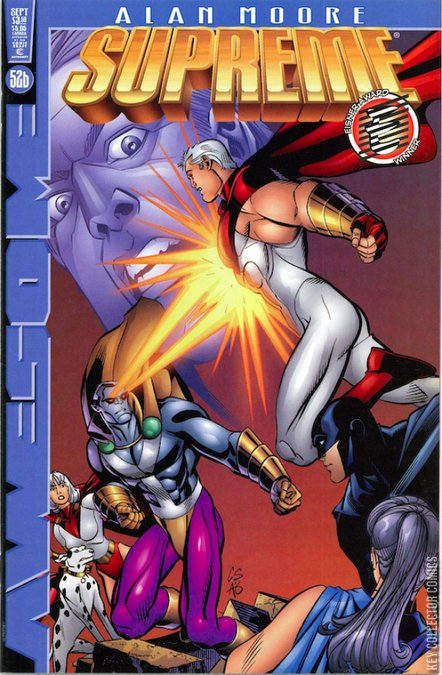 Double-sized. Professor Night, Twilight and the League of Infinity all jump into the fray to help Supreme and Suprema against Darius Dax in "The Return of Darius Dax!" Part 2 of 2, continued from Supreme #52A. Glory, Diehard. Bonus tales: