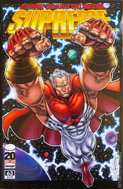 'REVELATIONS' The legendary Supreme returns! Alan Moore's final Supreme tale is the ultimate jumping on point for new readers! The triumphant return of Image Comics' most powerful hero! As Supreme romances Diana Dane he takes her on a tour of the Citadel Supreme and tells all of his innermost secrets just as Supreme's most hated nemesis, Darius Dax, makes a most unfortunate discovery: the key to defeat his abhorred adversary! It's most mind-blowing cliffhanger in the history of comics! Featuring a story by award winning author Alan Moore (Watchmen) and art by fan favorites Erik Larsen (Spider-man, Savage Drago) & Cory Hamscher (X-Men). You wish all comics were this good!