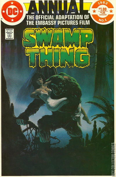 The Saga of Swamp Thing Annual was really just a comic adaptation of the Swamp Thing film released the same year and its cover the movie poster for the film. Despite having no ties to the ongoing series, also in 1982, there was a series launched entitled The Saga of Swamp Thing from whence this drew its name. It's numbering would be taken into account for subsequent annuals for the series but they dropped "The Saga of" prefix and were merely entitled Swamp Thing Annual.