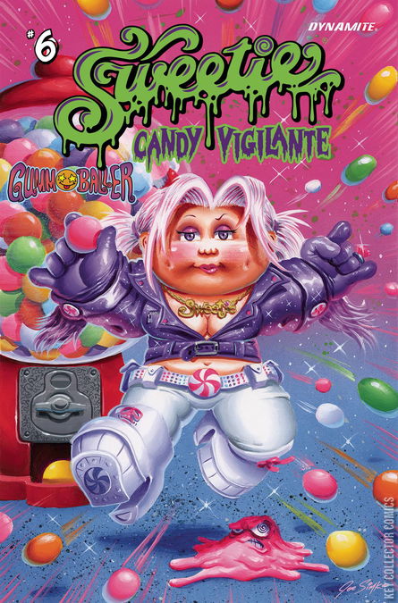 THE SWEETER THE CHERRY, THE JUICIER THE BOMBZ! HELLO DADDY, HELLO MOM� SWEETIE'S A GUM BALLER - DROPPING CHERRY BOMBZ ON NYC! Goodie gumdrops! It's the grand opening of the new Sweetie Candy Vigilante sweet shop, fully transformed, with obsessed customers lined-up to be the first to sample the 'sweet' new life and meet the CANDY VIGILANTE squad. The adoring crowd, decked out in official Candy Vigilante merch, have come to check out the goods, and hang on to Sweetie's every word. She is the OG Gumm Baller! Candy Wolf and Pixie serve-up selfies and autographs for candy-crazed fans; their verified presence on social media has made them instant rock stars. At 1.5 million followers and rapidly growing, Gummee Bear's online marketing skills bring it like bees to honey-reaching a sweet new global audience with limited edition confectionary drops. Meanwhile, Tinsel has decked the halls of the NYC flagship location to max potential-and it's time to get LIT! NYPD forensics conclude the mysterious goo found on the wounds of the headless hoodlum have chemistry consistent with some seriously KILLER cherry juice, and when the homicide division pays a routine visit to the decedent's last known business address, they find the newly opened sweet shop in its place. Taken aback by Sweetie's enchanting presence and unusual, yet charming demeanor, the cops are dealt a cold case of brain freeze, and the start of a major showdown soon follows. This issue goes off like Cherry Bombz�fizzy bang boom!! Life is SWEET� don't be salty-get issue #6 of Sweetie Candy Vigilante!