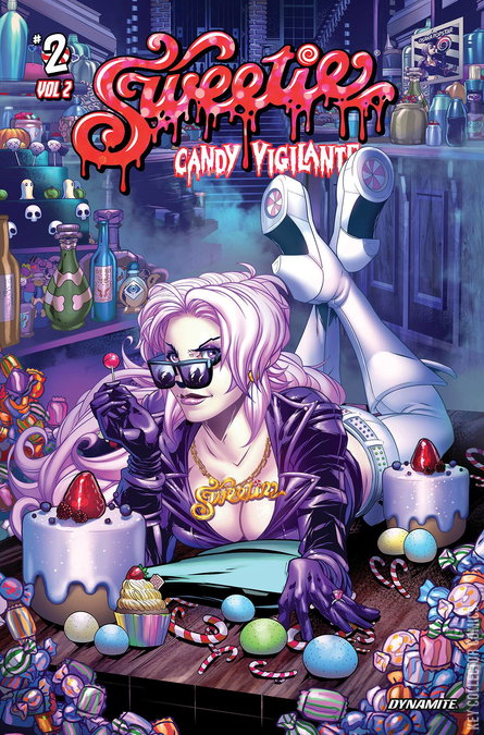 STAND AND DELIVER - YOUR HONEY OR YOUR LIFE! In the wake of the hostile 'Sugartown Showdown' street battle, Sweetie and her 'swirly pop' formation entourage (Candy Wolf, Pixie Stix, Hansel, Gretel, and the rest of the supernaturals) regroup victorious at the Candy Vigilante factory headquarters in Brooklyn. After getting iced by magic snowball flex and witnessing the grisly fatalities caused by exploding Easter egg grenades, jellybean munitions, and gingerbread jawbreakers, Bart Volgare and his thugs (at least what's left of them) know one thing is certain: the band is back together! Rumor has it SUV barely survived the weird trauma, so you might say he has something to smile about - permanently. Sweetie's arch-nemesis Bart may think that he got away, but you don't really believe she would just let him scurry off like that, do you? Peter Cottontail and Jack Rabbit lament that they didn't get to take the shot and egg-stinguish him in the name of SWEET revenge when they had the chance, but Sweetie makes it crystal clear she wants Bart alive - at least for now. He knows� something. Plus the bad wolf tower is pinging, and someone's house is about to be blown down. Meanwhile, the squad is introduced to Honey B, Sweetie's youthful beekeeper, who brings stinging news straight from the hive. Someone has been killing Sweetie's prize bees by chopping off their fuzzy little heads! Could it have anything to do with Sweetie's latest weapon? The frosted whipped-cream confection called 'SweetStuff' is derived from the sweetest, purest, grade-A honey, and for those who are pure of heart, it's one of the most delectable concoctions you'll ever taste. To the inherently bad, however, SweetStuff doesn't taste very SWEET at all - in fact, it melts away your� everything! It liquefies matter into a frosty, glittery goo, right down to the bone! Isn't that NICE? PICK UP SWEETIE CANDY VIGILANTE VOL. 2 #2 FOR ALL THIS AND LOTS MORE SWEET STUFF!
