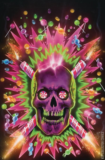 THIS IS FINE... AND DANDY AS CANDY! Is Pixie questioning a life of candy carnage? Are things all GOOD with Sweetie's resident ninjette? Is she acting BAD in the name of GOOD? What's really on her mind as she gazes into the halo of the Strawberry Ice Moon deep in thought? Moonlight on that and more will be shed.... Sweetie calls a company SWEET MEET to update Candy Wolf, Pixie, Hansel and Gretel, Peter Cottontail, Jack Rabbit, and Honey B. (with Gummee Bear and Tinsel joining on video conference), about the GOOD news that business is growing faster than imagined, and plans for the 'Fortress of Sweetness' are nearing completion. That's just Hatchy Milatchy! Soon, the entire world will know the name Sweetie Candy Vigilante! Also on the agenda, and topping Sweetie's NAUGHTY LIST, is salty nemesis Bart Volgare. Still reeling from the 'Sugartown Showdown,' he confides to his girlfriend that Sweetie's 'fairy tale wash-ups' (as he calls them) wiped out his entire A-Team, leaving him and his now disfigured henchman SUV as the sole survivors. SUV is literally speechless and scarred with a twisted grin on his face, unable to mutter a single word. He's seen some s**t! Turns out Bart's main squeeze is a high-profile member of the news media, and he's got a scheme to expose Sweetie on live TV for being more than what she may appear to be on her sugary surface. Tales of bullet-eating ice-crystal skulls made from magical snow, exploding jellybeans and grenade easter eggs leave his sanity, or at least his sobriety, in question. The NYPD learns two mysterious uninhabited islands, long since considered abandoned and dangerous, and within eyeshot of NYC's notorious jail on Rikers Island, have recently been purchased from the city by a 'private buyer.' Well, well- isn't that NICE!? THIS ISSUE IS DANDY AS CANDY... DON'T MISS IT!
