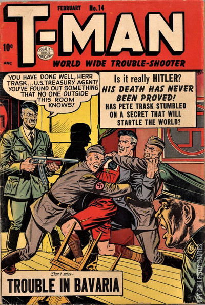 Home / Quality / T-Man / T-Man #14 Quality Released February 1954 T-Man #14 Add to Collection Want It Synopsis No synopsis available. Issue 14 of 38 Add to Collection Buy it on eBay Buy on eBay Low $25 Mid $70 High $230 Synopsis No synopsis available. Details Series T-Man Cover Date February 1954 Pages 36 UPC N/A Cover Price $0.10 Final Order Cutoff N/A Creators Cover Artist Reed Crandall Price Guide Log in or subscribe to access detailed graded price information and market insights. Log In Subscribe
