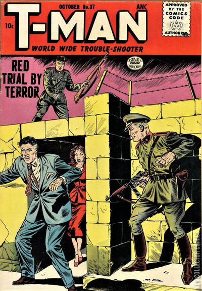 Home / Quality / T-Man / T-Man #37 Quality Released October 1956 T-Man #37 Add to Collection Want It Synopsis No synopsis available. Issue 37 of 38 Add to Collection Buy it on eBay Buy on eBay Low $25 Mid $70 High $240 Synopsis No synopsis available. Details Series T-Man Cover Date October 1956 Pages 36 UPC N/A Cover Price $0.10 Final Order Cutoff N/A Creators No creators listed. Price Guide Log in or subscribe to access detailed graded price information and market insights. Log In Subscribe