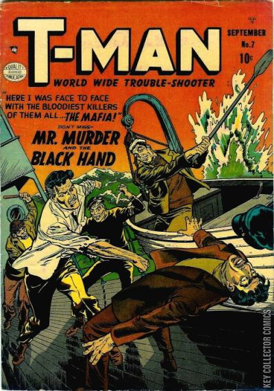 Home / Quality / T-Man / T-Man #7 Quality Released September 1952 T-Man #7 Add to Collection Want It Synopsis No synopsis available. Issue 7 of 38 Add to Collection Buy it on eBay Buy on eBay Low $35 Mid $110 High $365 Synopsis No synopsis available. Details Series T-Man Cover Date September 1952 Pages 36 UPC N/A Cover Price $0.10 Final Order Cutoff N/A Creators No creators listed. Price Guide Log in or subscribe to access detailed graded price information and market insights. Log In Subscribe
