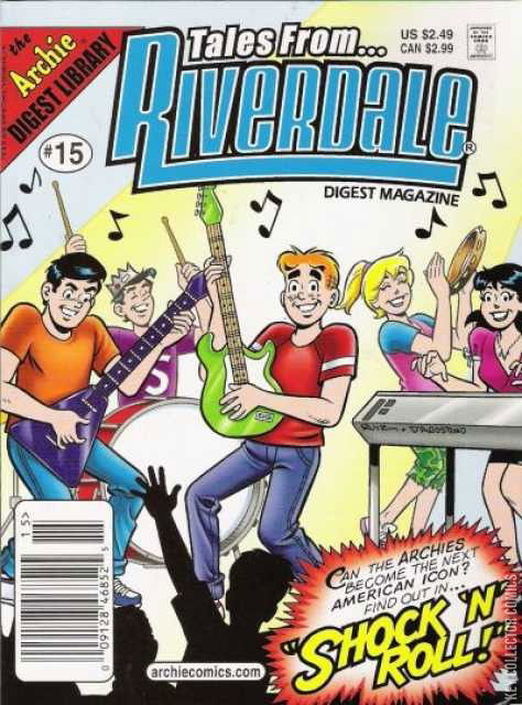 "Shock 'n Roll": The Archies are back, and determined to win the "American Icon" talent contest. Unfortunately, their rivals Ray and the Ray-vons are determined to stop them using any dirty tricks necessary. But could their scheme backfire and cause the Archies to unintentionally create a brand-new dance craze? Check out the musical mayhem for yourself! Plus, puzzles, games, and your chance to "Find Your Name in Print!"