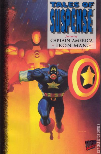 Iron Man and Captain America star in Tales of Suspense, harkening back to the good ol' days and the original ToS, starring Cap and Shell Head! This story pits our heroes against DANTE, a terrorist group led by Cap's old nemesis, Emil Stein. Tony Stark will need to get hold of Stein for his own reasons - notes on the production of his armor have fallen into the madman's hands! When Iron Man and Captain America learn that DANTE plan to assassinate the president of a major company, they switch into high gear, and the heroes swap roles. Cap dons a suit of armor, and, when Iron Man's own armor fails, Tony is forced to take it off and fight like a man!