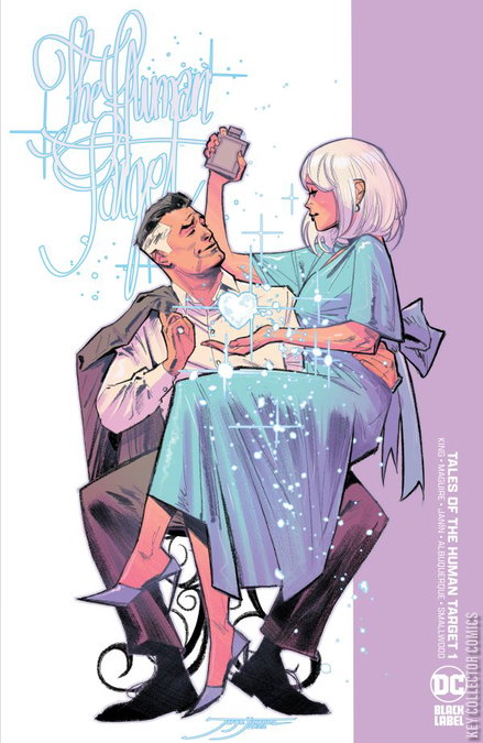 OH HERE HE IS Building on the most critically acclaimed series of the year, Tom King and four of comics’ top artists tell the tales of what happened before Chance drank Luthor’s poison. Chance teams up with fan-favorite members of the JLI in four connecting mysteries that lead them to that fateful day when one them will kill the Human Target.