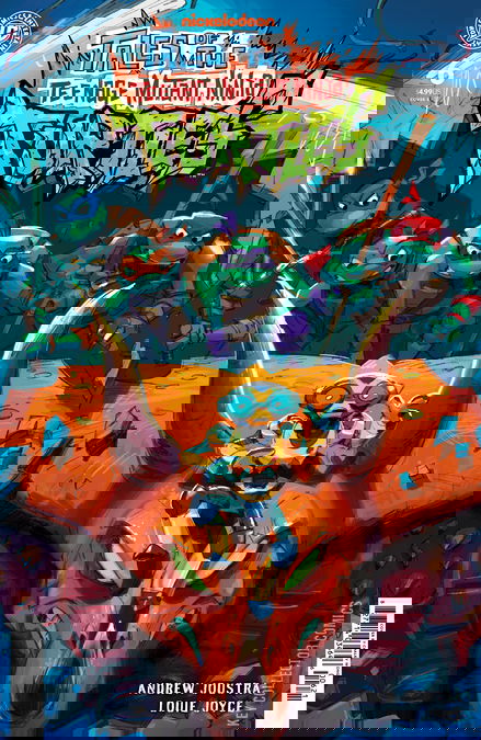 New tales of the TMNT based on the newest Ninja Turtles animated series! Fugitoid must take fate into his own robot hands to save the Ninja Turtles. Blanque and Bishop are closing in! With the Turtles trapped in the bowels of the E.P.F. alongside Zog, Fugitoid will have to draw on every last bit of his humanity and his new ninja training to face his past. By debut comics writer Andrew Joustra (Teenage Mutant Ninja Turtles: Chrome Alone 2Lost in New Jersey) and neon-punk comics artist Louie Joyce (Godzilla: Skate or Die, Haphaven, Past the Last Mountain).