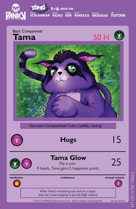 2ND PRINTING! THE VIRTUAL PET THAT WANTS TO KILL ‘EM ALL! PANICK ENTERTAINMENT unleashes its debut title T.A.M.A.. We all had ‘em—virtual pets like Tamagotchis, NeoPets, and Digimon. But what if, after years of neglect, one returned... for revenge? When a grieving, lonely teen stumbles upon an old virtual pet system, he finds comfort. But when gruesome deaths begin to follow, he wonders—could his digital companion be responsible? T.A.M.A. mixes the nostalgia of virtual pets with the generational phenomenon of Pokémon. Interior art by Daniel HDR (Masters of the Universe), Special Cover A TAMA Trading Card Homage Cover by Jim Fletcher