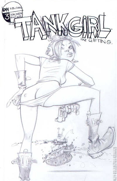'Please, Mr. Comic Store Owner, where can I find a comic book that offers schoolboy humour, unbridled slapstick violence, totally unnecessary swearing, and a woman with big honkers and a grenade pin between her teeth?' 'Why, that's simple, little Jimmy. You're looking for Tank Girl: The Gifting issue 3 by Ashley Wood and Alan C. Martin. There you go. Now run along. And don't tell your mum.'