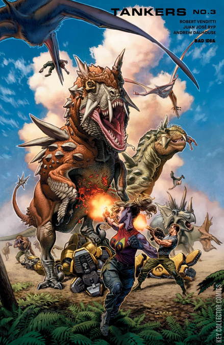 The CEO of global energy conglomerate Greenleaf Oil has just discovered a terrifying secret: the planet only has a decade or less of petroleum left before it's gone forever. But he has a plan to make sure his great-great grandchildren can continue to generate maximum shareholder value – and secure his own legacy in the process. Rather than develop a game-changing renewable energy source through the power of corporate innovation, Greenleaf has perfected the next best thing – time travel (duh) – so that a team of six field-rat contractors armed to the teeth in individually customized mech suits can go back to the Cretaceous Period, tweak the trajectory of the meteor that killed the dinosaurs, and give mankind another 500 millennia worth of oil reserves. What could go wrong? Only all of human history, of course – because when Greenleaf's team of Tankers come home, they'll discover that not only did the dinosaurs never die out, they’ve kept evolving for another 60 million years...and they’re more pissed off than ever.